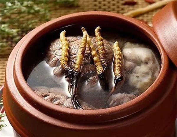5. 冬蟲夏草煲湯:將冬蟲夏草與豬骨、豬肉、雞肉等一起煲湯,能夠滋陰養腎,強壯身體。