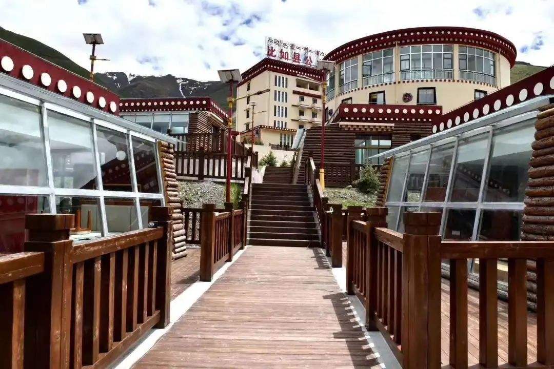 公主溫泉康養(yǎng)中心,是唐蕃古道文化旅游景區(qū)的主要住宿設施,酒店借鑒傳統(tǒng)的藏式風格建筑,融入了現(xiàn)代江南水鄉(xiāng)的建筑風格。酒店建筑面積3222.5㎡,樓高5層,建筑高度17.5m,客房共有45間,床位70張,餐廳可同時容納300人就餐,停車場可容納60輛左右的車位。