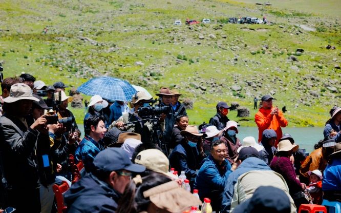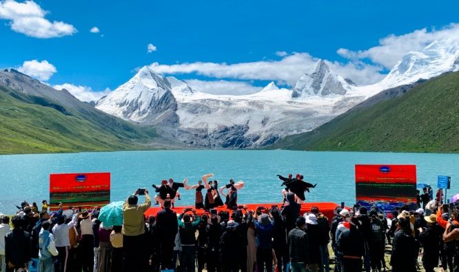 天高地闊,白云祥和,雪山巍然;清風徐徐,青草依依,湖水湛藍。薩普雪山融水匯聚成一條清澈的河,從眼前激流直下。7月15日上午,一場別具特色的文化旅游賽事活動在這里拉開序幕。一場慷慨激昂、內容豐富的主題推介演講,一首首悠揚高亢、直擊心靈的民族歌曲,一幕幕輕盈靈動、鏗鏘有力的特色舞姿,引得現場數百名觀眾一陣陣掌聲雷動和直播間數十萬用戶點贊、好評不斷,成功向區內外推介了比如縣得天獨厚的旅游資源和特產資源,為旅游事業和經濟社會高質量夯實了宣傳工作基礎。