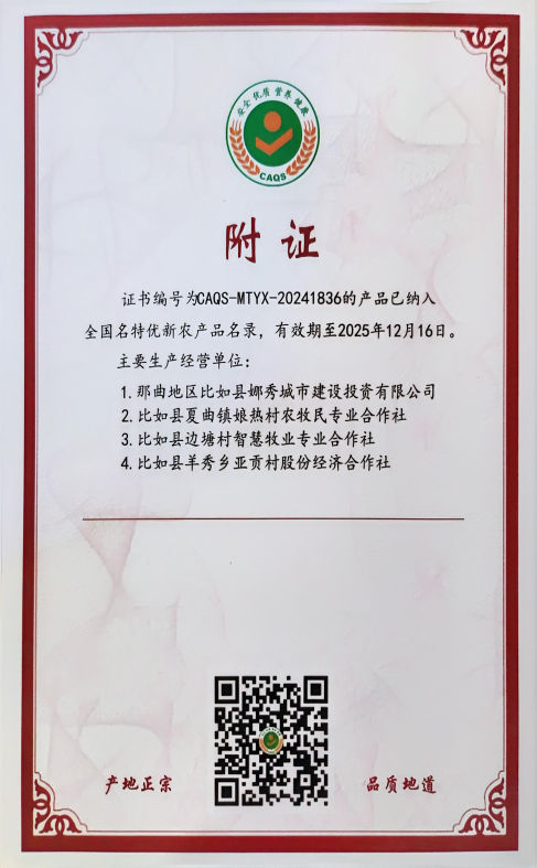 近年來,比如縣委、縣政府始終堅持穩(wěn)糧、興牧、強特色,圍繞鄉(xiāng)村振興戰(zhàn)略,以調整畜禽結構為主線,以發(fā)展規(guī)模化養(yǎng)殖為抓手,以實現(xiàn)品牌增值為突破口,將“亞貢牦牛”品牌建設作為推動畜牧業(yè)轉型升級的核心引擎,著力做好本土優(yōu)質種源的開發(fā)與保護,全面推進畜牧業(yè)高質量發(fā)展。功夫不負有心人,“比如亞貢牦牛”現(xiàn)已成功獲得國家生態(tài)原產(chǎn)地產(chǎn)品保護標志,順利取得有機轉換認證證書,并榮耀入選“全國名特優(yōu)新農產(chǎn)品”名錄。這些榮譽不僅是對比如縣畜牧業(yè)發(fā)展成果的高度認可,更是其邁向更廣闊市場的有力“通行證”。
