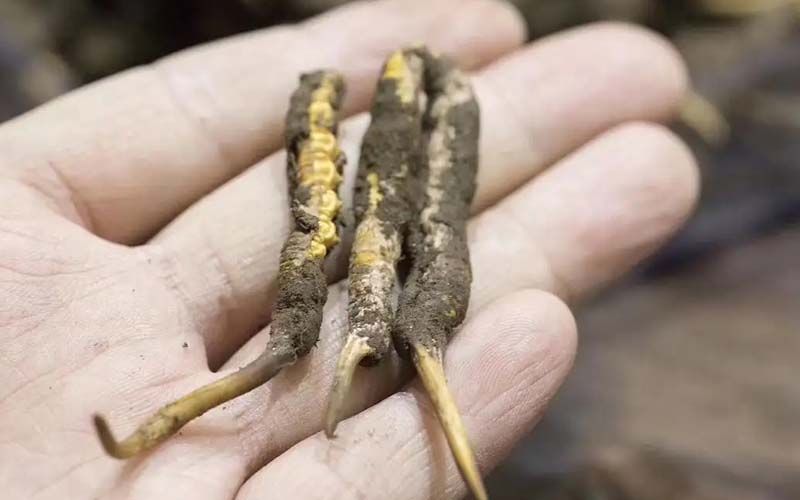 4、四川阿壩、甘孜等地也出產冬蟲夏草。其產品質量遜于青海、西藏產的冬蟲夏草。總體來說,四川產冬蟲夏草肉質偏硬,色澤較深,味道苦,蟲草的眼睛為深褐色。